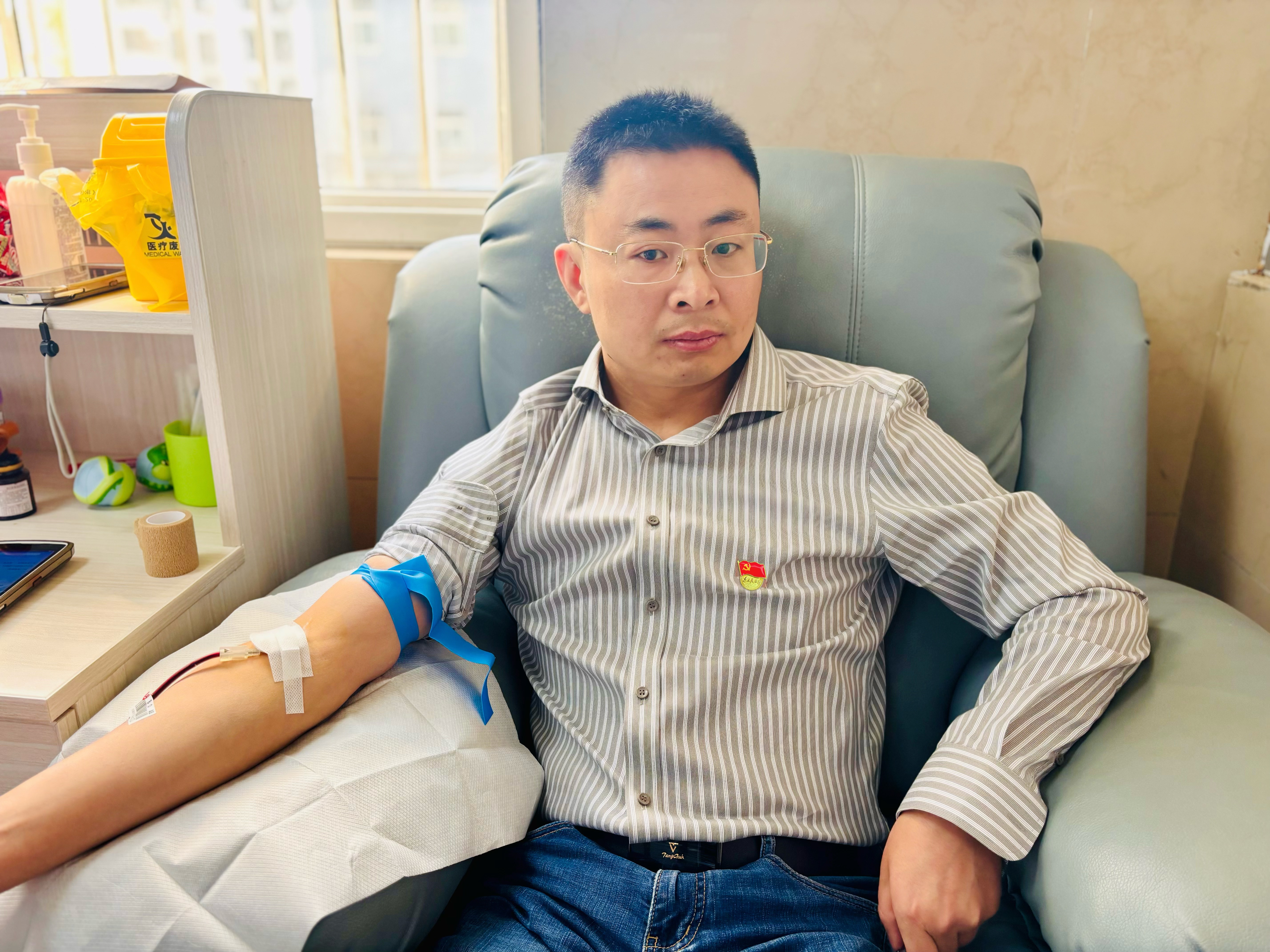 活動(dòng)中,在市中心血站工作人員的引導(dǎo)下,大家有序完成了信息登記、健康征詢、血壓測(cè)量、初篩檢測(cè)等工作。隨后,黨員志愿者們積極帶頭,紛紛挽起衣袖、伸出手臂,2300CC的熱血與熠熠生輝的黨徽在這一刻共同譜寫出了生命的贊歌。